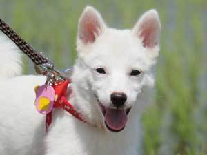 DOS18027 仮 名:ポチ 引上場所:ペット救護対策協議会 種類・特徴:北海道犬 性 別:オス 体重:18.8kg 年齢:2018年11月時点で推定1歳 毛色・毛種:白・並毛 5種ワクチン/健康診断/去勢済/マイクロチップ 狂犬病ワクチン ポチは2018年9月6日に発生した北海道胆振東部地震で 飼い主さまが被災され、今後飼育出来なくなったと 北海道獣医師会や当会もご協力させていただいている 「平成30年北海道胆振東部地震ペット救護対策協議会」 を通して当会にやって来ました。 性格は元気いっぱいで好奇心旺盛 遊び好きなやんちゃな子でした。 番犬気質が強く 知らない人にはかなりの勢いで吠え 臆病な面もあり、網越しなどでは 咬もうとする仕草も見られました。 遊び方も激しい甘噛みをすることがあり しつけトレーニングは必須でしたが ご理解ある優しい飼い主さまとの出会いがあり 大切な家族の一員になりました♪ |