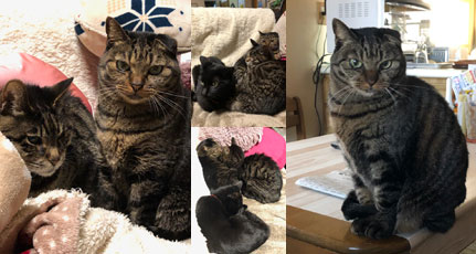 しっぽの会のみなさまご無沙汰いたしております。撫子(いぶき)の飼い主です。今年はご連絡が少し遅れてしまいましたが、撫子は4月2日に無事に10歳を迎えました。小さな仔猫だった撫子が、もう10歳です。4月5日に健康診断を受け、なんにも心配することはないとの結果でした。ただ、体重はこれ以上増やさないように、とのことでした。5.5kgあるのです。相変わらず、食べることといたずらが大好きな元気な撫子です。我が家は変わらず4にゃんとの生活を続けております。末っ子の撫子が10歳という高齢家族となりましたが、みな、元気に過ごしております。撫子が車に乗るのが苦手でなければ、一度長沼まで伺いたいのですが、とにかく車が嫌いなコですので、ご容赦くださいませ。しっぽの会のわんこ、にゃんこが終生のご家族に巡り合えますことを、お祈りいたしております。スタッフのみなさまも、どうかご健勝でお過ごしくださいませ。
