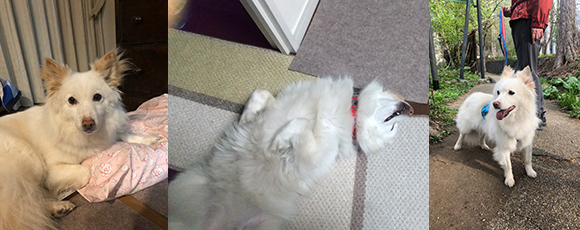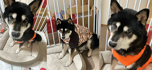 3か月半がたち、家の中での生活、外での散歩にすっかり慣れました。ごはんとおやつをモリモリ食べて、12kgを超えてしまいました、今は、少しダイエット中です。冷蔵庫のドアを開けると、顔を入れてきて「はやく!はやく!」、冷蔵庫のドアを閉じると、ジャンプして待ちきれません。また、以前は、いろいろな場所でおしっこをしていましたが、今は、トイレでしっかりできるようになりました。寝る前の歯みがきもできるようになりました。3月末に、私が膝を骨折してしまい、杖なしでは歩けなくなりました。これでは、サスケさんの散歩はできません。そこで、職場の同僚が交替で夜の散歩につきあってくれました。感謝、感謝です。1時間近く、歩いたり、走ったり、大満足で帰宅します。私の膝が回復し、今は、一緒に長い距離を歩けるようになりました。これからもサスケさん、よろしくお願いします。
