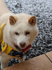 こんにちは、しっぽの会の皆様、お元気ですか!ベーゼが家族になって3ヵ月が過ぎました!毎日ジェノと一緒にお散歩したり、ガウガウ遊んだり、お留守番したり、元気に過ごしています!家族の皆とも仲良くなりました!また、お家では落ち着いて生活出来るようになりました。今、家でのお気に入りの場所はぽかぽかサンルームです!今年は家族になって初めて雪の中お散歩、雪遊び!雪は大好きみたいで本当に楽しんでいました!まだ、知らない場所や知らない人、ワンちゃんは苦手で、時間がかかるとは思いますが、少しずつベーゼの社会が広がって行けたらいいなぁと思っています。これからも家族とジェノとベーゼと幸せな毎日を過ごして行きます!季節の変わり目ですので、皆様くれぐれもお身体大切にしてください!また、遊びに行きます!