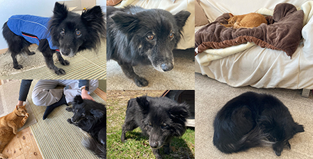 四朗兵衛がうちに来て早3年以上になります。しっぽの会には2度里帰りしましたがその後あいにくのコロナ禍で尋ねることができませんでした。マイペースな老犬で、気に入った餌しか食べない頑固な一面もありました。半年に一度の精密検査で腎臓が悪いことが判明し死の淵に2度立たされましたが、見事に生還し、医者も驚くほどでした。散歩が大好きで2度の散歩は2時間以上。6月25日夕方の散歩でいきなり倒れ、翌26日5:30に家族に看取られ、(兄弟猫2匹もお別れに立ち合い)虹の橋を渡りました。苦しまず、穏やかな死でした。獣医さんの話では心筋梗塞でしょうと。その日の午後何もできずに横になっていると、廊下を歩く四朗兵衛の足音が聞こえました。「元気出しなよ、大丈夫だよ」と言っているようで四朗兵衛に励まされて前を向いて生活しています。それから四朗兵衛は会いに来てくれませんが、四朗兵衛に心配かけないよう生活しています。まだまだ寂しくて泣いてしまいますが、たくさんの癒しと愛をくれた四朗兵衛に感謝しています。スタッフの皆様も大変なお仕事だと思いますが、愛情一杯頑張ってください。ありがとうございました。