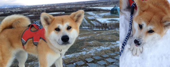 真白な雪がたっぷりと降った日は、ウサギやタヌキの足跡を追跡したり、“いい顔”しながら雪の上を元気に転げ回っています。