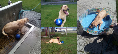 笙太とボール遊びしていると黒ラブの女の子も参戦。