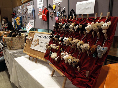 手前からしっぽの会オリジナルグッズのブースです。 今年はステッカーや缶バッジを作成しました。 そのほかボランティアのみなさんからは犬用お洋服や、手作りカラー&リード、ハーネス、犬用アウトドアグッズ、オヤツ・・・etc など、可愛らしい商品をたくさんお安くご提供いただきました。 ボランティアのみなさん、ありがとうございました。 |
