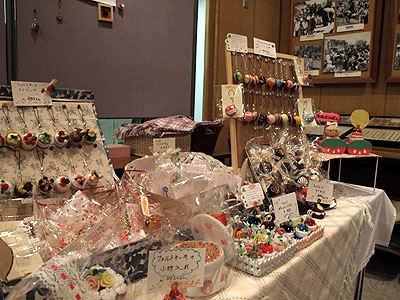 小さな小さなフェルトでできた小物たち・・・・ スイーツがとっても精密にできてます。 ストラップやカードスタンドになっています。 |