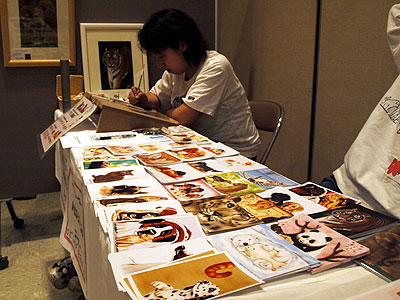 イラストレーターかきはらひとみさんによる原画、ポストカード販売、愛犬愛猫の似顔絵製作のコーナーです。 http://uptail.com/ リアルな中にも、可愛らしさたっぷりの動物たちが生き生きと描かれています。 |