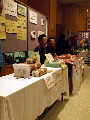 いつもお世話になっている、ガイア農場さんと、ノースペットさんの美味しい販売ブースです。 ボリュームたっぷりの犬用オヤツや、新鮮平飼い卵など。 |