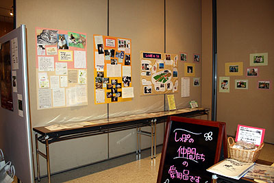 しっぽの会から巣立って行った子達の幸せな写真やお便りの展示です。 しっぽの会の1日もわかりやすく掲示しました。 |