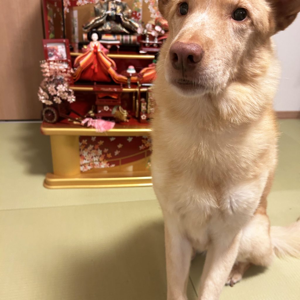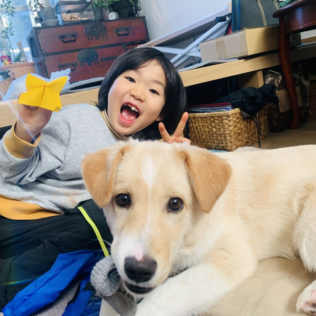 顔を背けて固まってしまうことも多いですが、オヤツの時には立ち上がって食べに来てくれるようになりました。