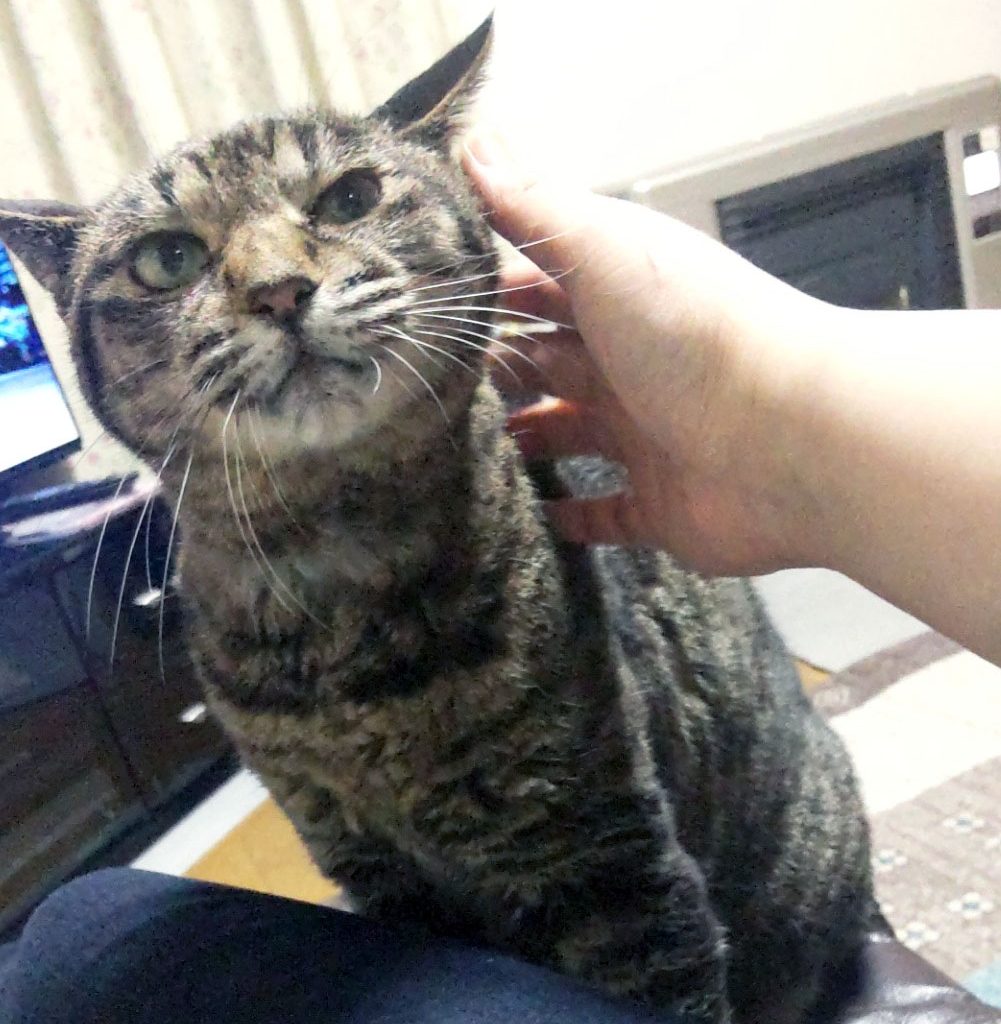ここのところ急速に人慣れが進み、今ではなでられると気持ちよさそうにゴロゴロ言い、自分から「もっとなでて」と寄ってくるようになりました。