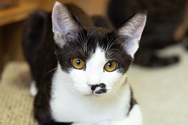 保護時は人に慣れておらず、部屋に人が入るとシャーシャー威嚇しゲージの中を逃げ惑う様子が見られました。