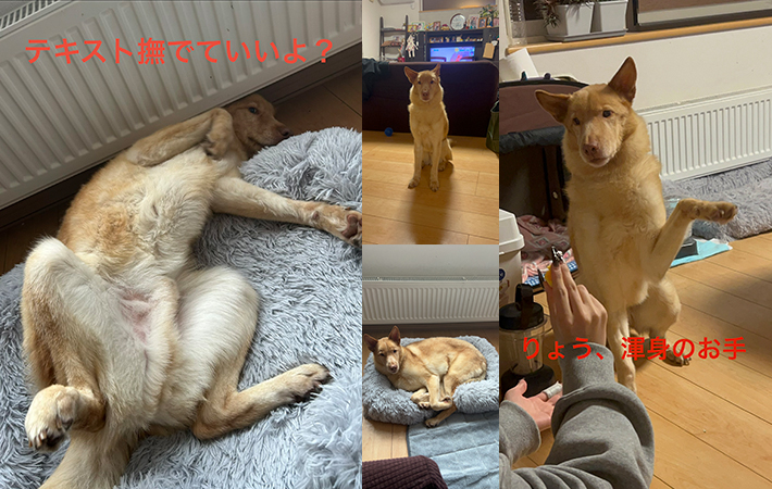 こんにちは。りょうが我が家に来て3週間ほど経ちました。家に到着し、1時間後にはへそ天を披露し、「触っていいんだよ?」と言わんばかりのアピール。堂々とした風格に子犬からうちのこだったのかな?と勘違いしそうになるくらいのマイペースぶりを見せています。排泄も失敗することなく(ただ、ママの部屋はうんち場だと思っている)イタズラもお留守番初日のみ。食が細くて毎日何がいいのか検討中ですが、病院の診察時に特に問題はなく、てんかんの薬も頑張って飲んでくれてます。日々、可愛さが増しているりょうくんです。名前は会にいた時と同じりょうにしました。家族全員、名前が『り』から始まる奇跡。これは運命としか思えず賢いりょうも自分名前に反応してくれています。そして、お手が独特で可愛らしい。いつまでも元気で仲良く過ごせることを切に願っています。