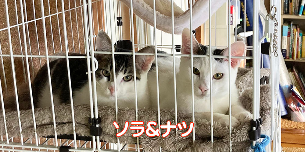 ナツちゃんとソラちゃんのご報告をありがとうございます。 ナツちゃんとソラちゃんという素敵なお名前になったこと、とても嬉しく拝見しました。ナツちゃんは積極的で食いしん坊、ソラちゃんは慎重で遊び好きと、それぞれの個性が早くも出てきていますね。初めての猫との暮らしに安心していただけているとのこと、私たちも嬉しく思います。またのご報告もお待ちしております。