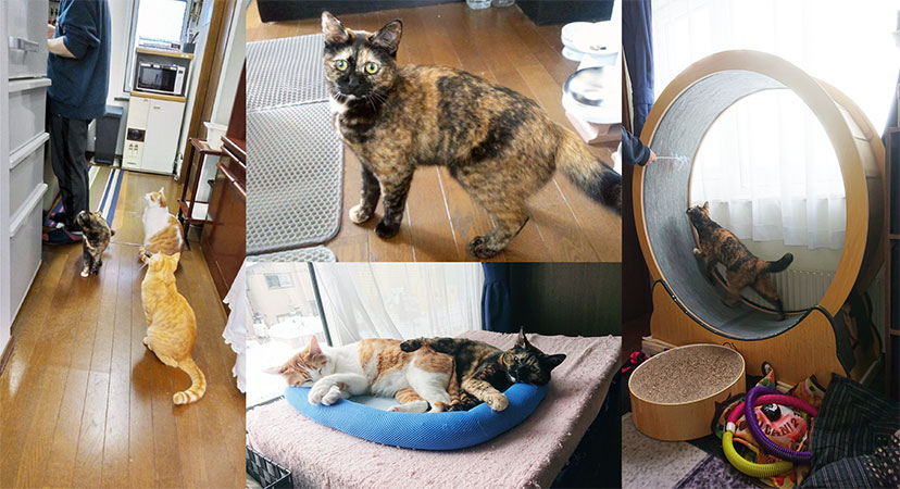 ミクちゃん、お迎えから3ヶ月、粗相もなく、ふうちゃん・レンくんと仲良く遊びながら元気に過ごしているとのこと、とても嬉しく拝読いたしました。お手もすぐに覚えてしまうなんて、本当に賢い子ですね。 キャットホイールは、楽しく運動できて一石二鳥、これからもガンガン回して欲しいです(^^)これからも3頭が元気に健やかに過ごしてくれることを心より願っております。また成長のご様子をお知らせいただけましたら幸いです。