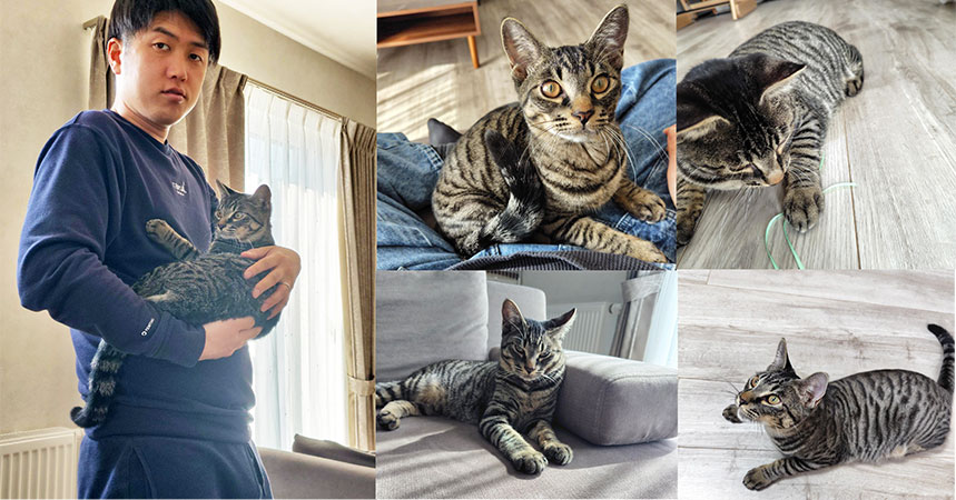 チャナのを引き取らせてもらい、3月で早2年経ちました。チャナは相変わらず遊ぶのが大好きで、良く遊び、良く食べ、良く覗き、元気に過ごしています!猫と仲良くしているのはもちろん、最近は気がつけば人間の側でくつろいでいる時間も増えてきました。ハンデのあるアズキにも配慮ができるようでchatGPTに、賢い子だと褒められていました。天真爛漫でお転婆ですが、我が家のムードメーカー的な存在で猫4匹、人間2匹で楽しくすごしています!追伸:最近、我が家にウンコ泥棒が出没してますので、尻尾でもお気をつけください。