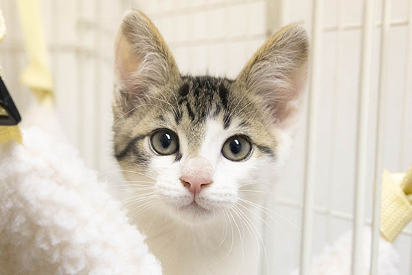 ウユは2025年9月、長沼町の民家の納屋で生まれました。母猫が授乳中に避妊手術を受けてしまい子育てができなくなったため、当会で引き取り、預かりボランティアさん宅でミルクを飲みながらすくすく育ってきました。ウユはごはんが大好きな食いしん坊で、仔猫らしく好奇心旺盛。お部屋の探検やおもちゃ遊びが大好きな元気な女の子でした。